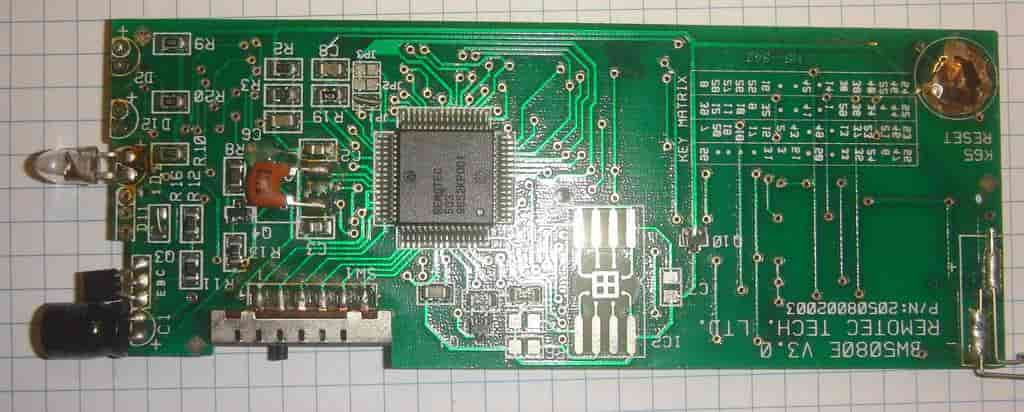 Вторая сложная проблема — выход из строя кварцевого резонатора, необходимого для формирования сигнала для телевизора. Этот элемент у отдельных производителей размещен в разных частях электронной платы. Поэтому определять поломку придется на слух. Плату легонько трясут возле уха: если слышен шорох, как от перекатывающихся песчинок, значит, резонатор поврежден и требует замены. Это можно сделать самостоятельно или отдать пульт в мастерскую.