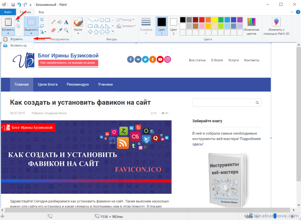 - Слева вверху, в меню нажмите на кнопку “Вставить” (Ctrl+V).
