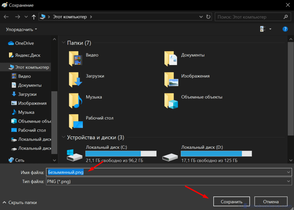 - Чтобы сохранить скриншот: Файл → Сохранить как (F12)→ Изображение в формате PNG → Задайте имя → Сохранить.