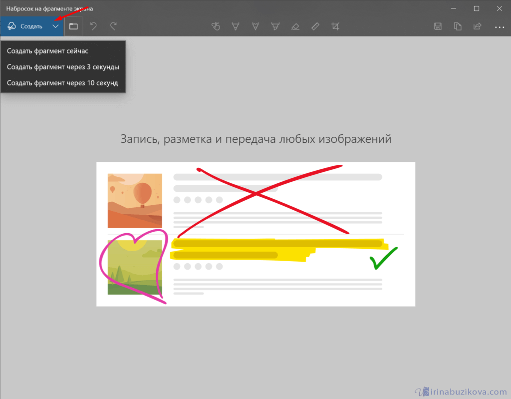 Еще одно стандартное приложение Виндовс 10 – Набросок на фрагменте экрана. Это приложение похоже на приложение Ножницы, только улучшено и изменен дизайн приложения.