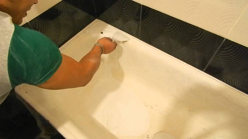 Если на эмали есть значительные сколы, то акрил их не исправит и не скроет – придётся зашпатлевать их.