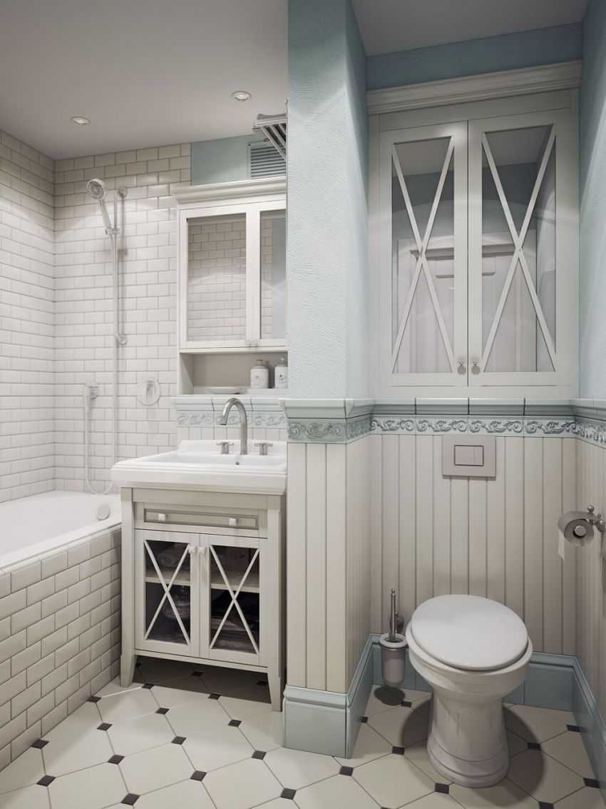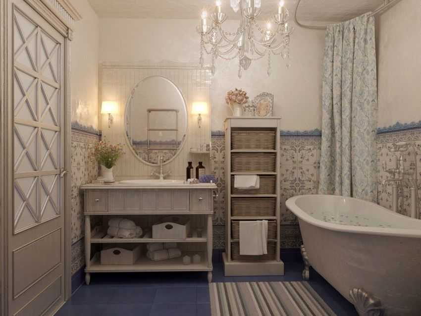 В отличие от предыдущих стилей, данное направление достаточно «мягкое». В оформлении ванной появляются нотки натуральных материалов, используемых без помпезности и шика. В качестве основного материала применяют древесину без дополнительных декоративных покрытий.