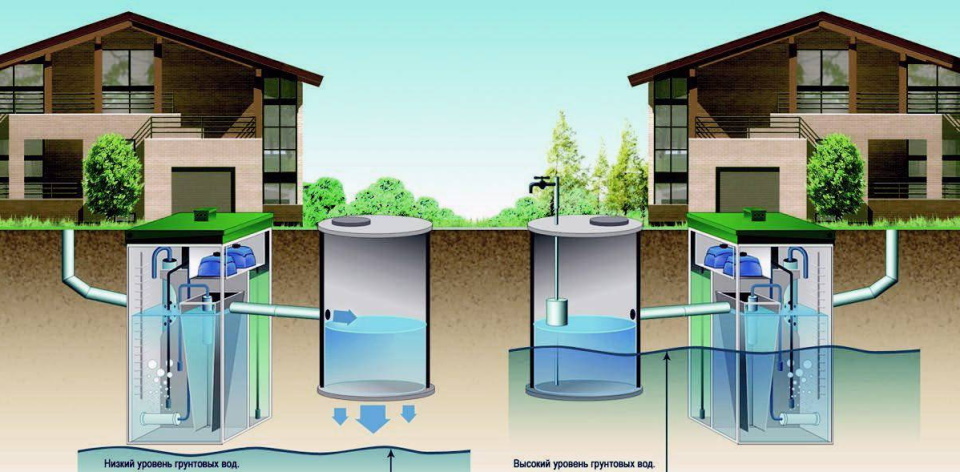 Еще вариант использования Микро-Тритона — в качестве накопительного колодца при устройстве более сложной системы очистки, когда после выхода септика ставят накопительный колодец, а из него при помощи фекального или дренажного насоса перекачивают на насыпные поля фильтрации. Такой устройство необходимо при высоком уровне грунтовых вод и плохой проводящей способности грунтов.