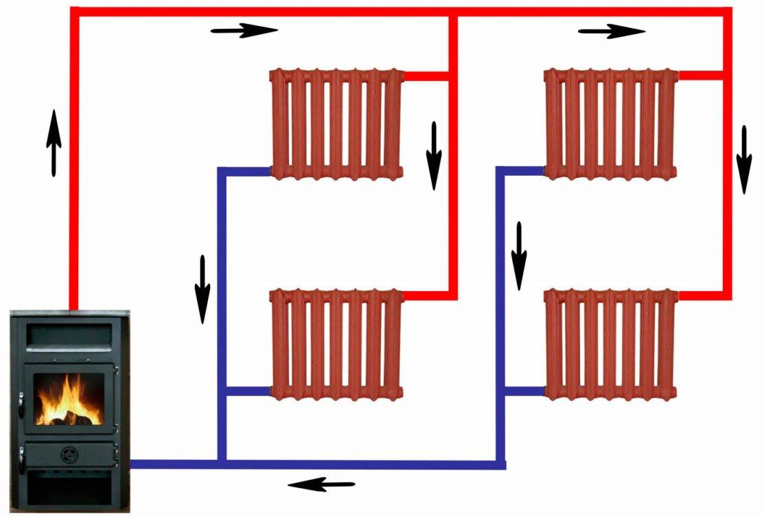 Схема закрытой двухтрубной системы отопления двухэтажного дома с принудительной циркуляцией