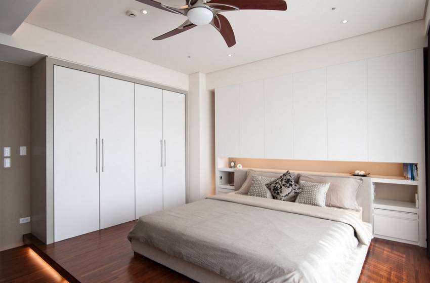 Один из самых популярных вариантов гардеробных на сегодняшний день – это шкафы с дверью-купе. В первую очередь из-за возможности сэкономить пространство. Крепить их можно не только к мебельной коробке, но и непосредственно к потолку.