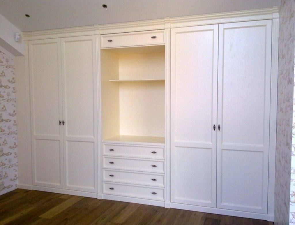 - встроенные — боковыми стенками их являются части самой комнаты: стены, пол, потолок. Встроенные изделия стоят дешевле, так как для их изготовления требуется меньше материалов. Особенно уместны встроенные конструкции для небольших и нестандартных помещений.