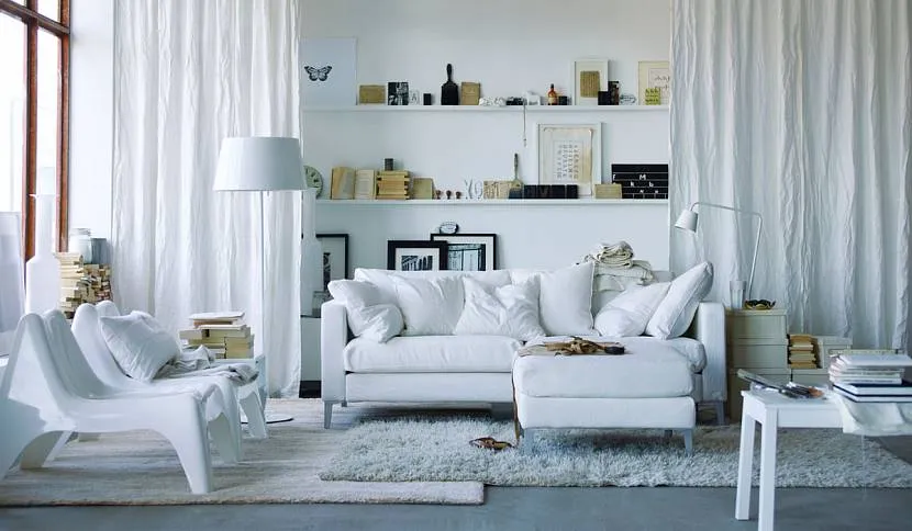Гостиная со светлыми шторамиИсточник dekoriko.ru