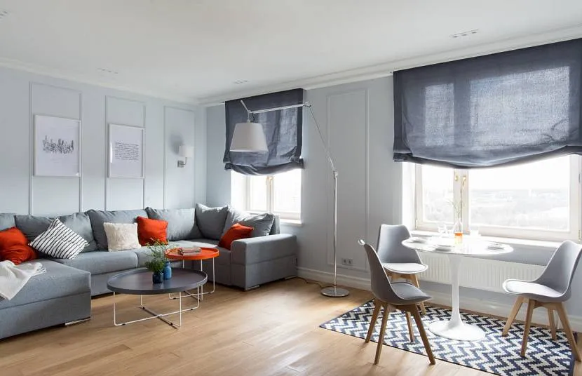 Интерьер с римскими шторамиИсточник design-homes.ru