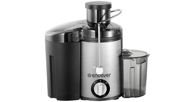 ENDEVER Sigma 76 – бюджетный образец за 2 100 рублей. Несмотря на скромный ценник, может похвастаться множеством положительных отзывов. Аппарат имеет две скорости от 15 000 до 21 000 оборотов в минуту. Объем резервуара для отходов – 1,5 л, а для сока 450 мл. Оборудован прямой системой подачи, плавным пуском, блокировкой при неправильной сборке, а также “капле-стопом” в двух положениях.