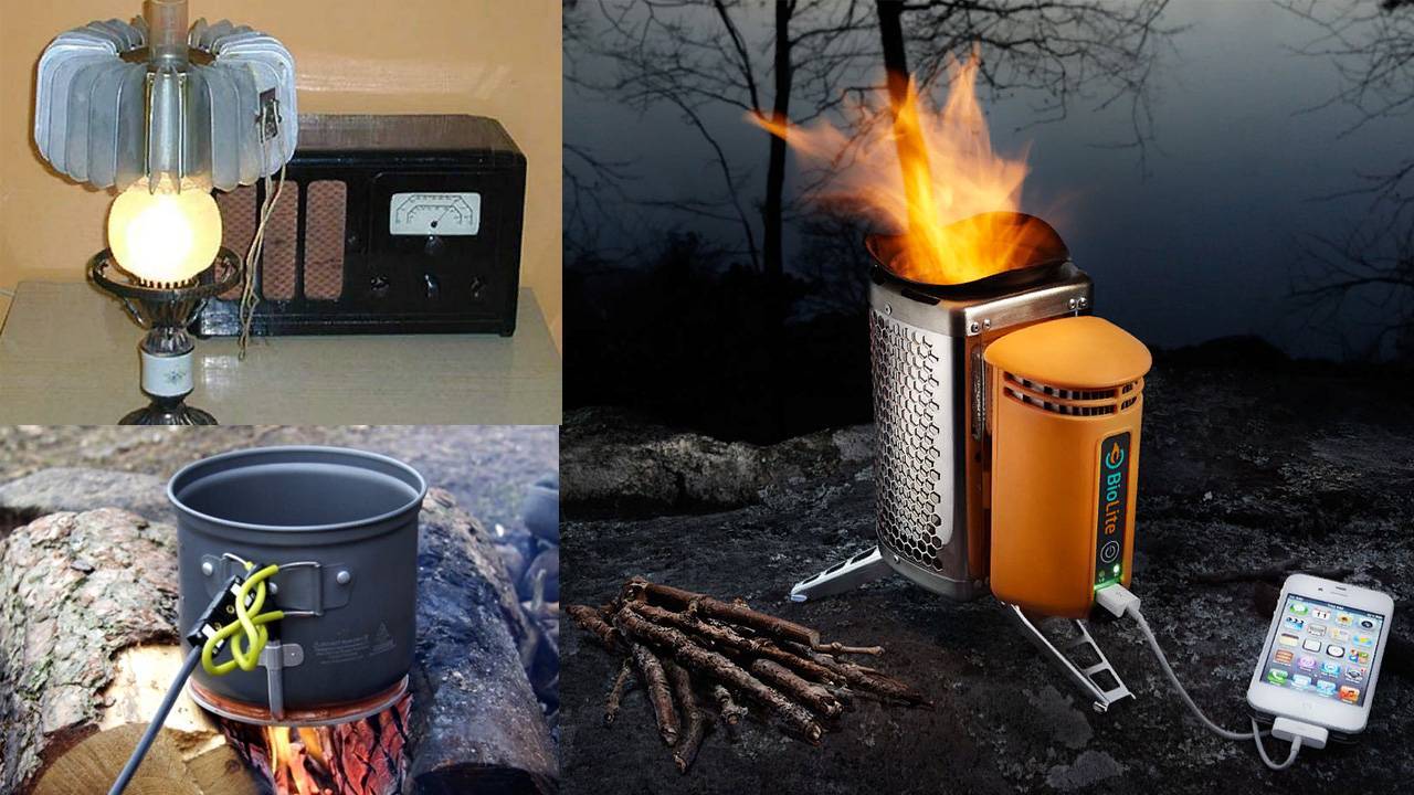 Сейчас выпускаются портативные генераторы на основе элементов Пельтье, конструктивно совмещённые с турбопечкой или котелком. Вырабатывают энергию попутно с приготовлением пищи.