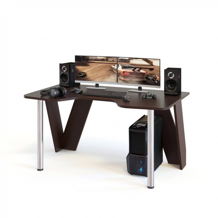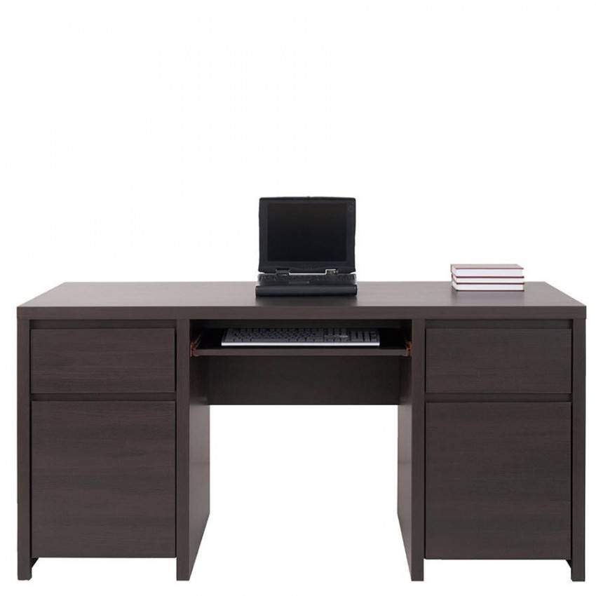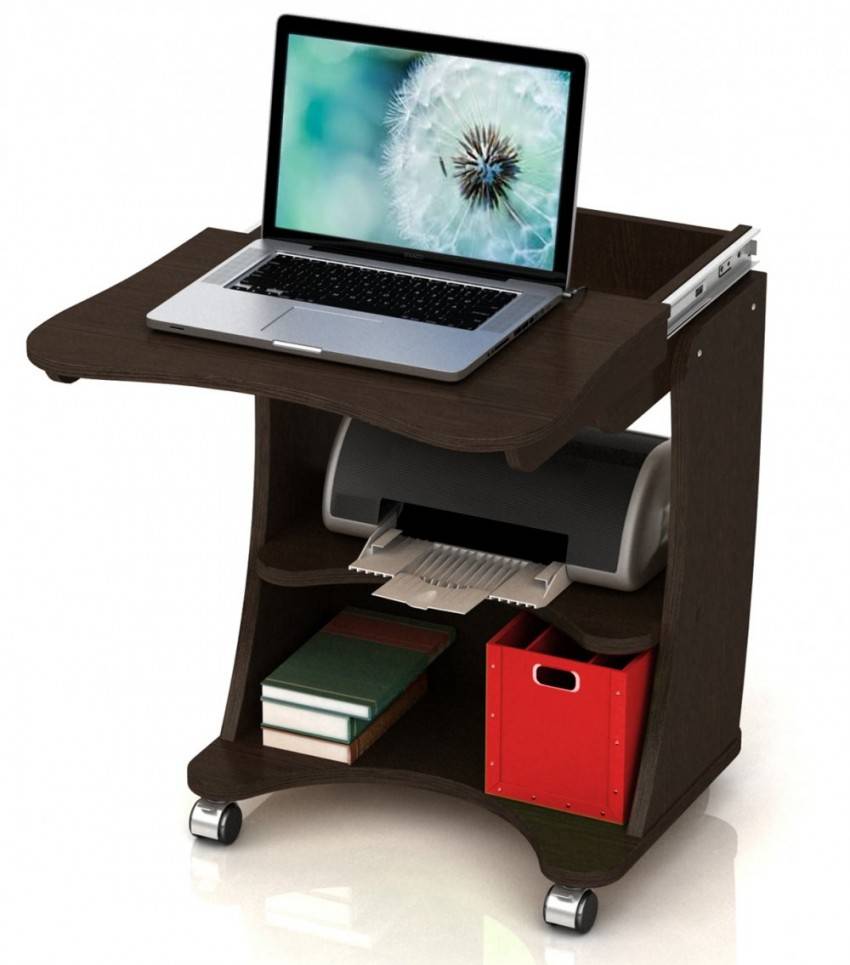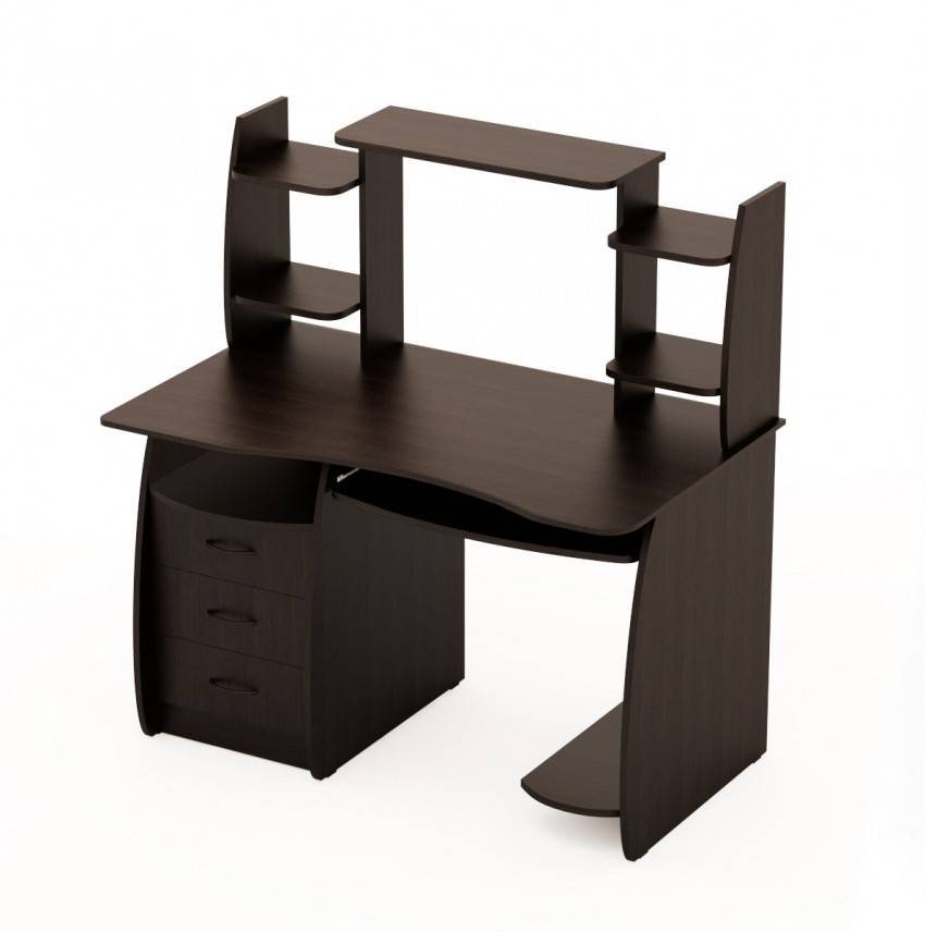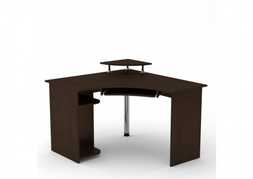 По сравнению с компьютерным, это более простая и облегченная модель, хотя в некоторых случаях требуется оснащение эргономичной системой выдвижных ящиков. Фурнитуру для декоративной отделки лучше выбирать с металлическим блеском, это отличное сочетание со структурой темного строго дерева. За счет своего шоколадного оттенка, изделие выглядит аккуратно и весьма устойчиво к появлению загрязнений.