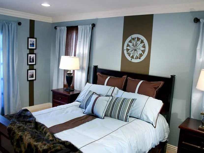 Это природное сочетание цвета неба и земли или моря и берега. В коричнево-голубой спальне возникает ощущение мира и стабильности.