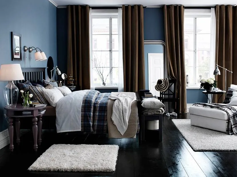 Шум прибоя: брутальная спальня в коричнево-голубых тонах
