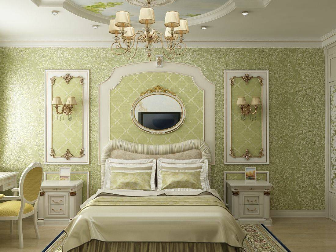 Зеленая спальня в классическом стиле