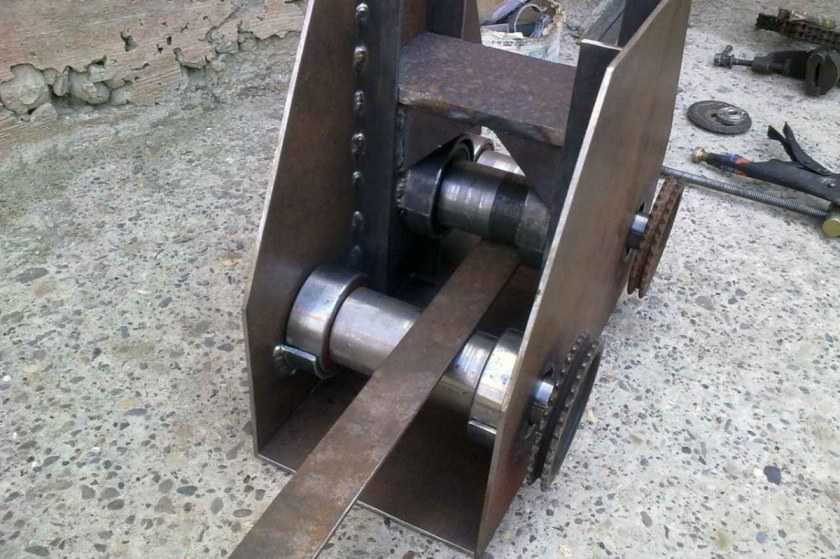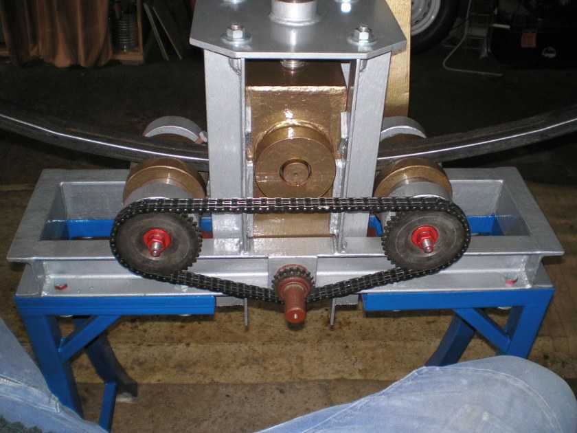 В общем и целом, собирают самодельные гибочные станки для профильных труб из того, что имеется под рукой или того, что найдут/купят недорогого. Кто имеет возможность — вытачивает ролики, вставляет подшипники. У кого такой возможности нет, используют то, что есть — вплоть до втулок от велосипедных колес. В целом надо понять конструкцию и