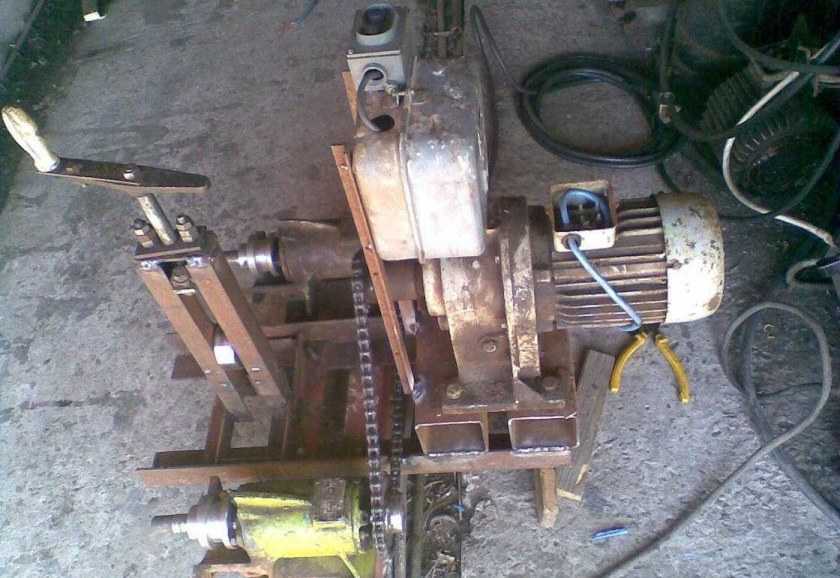 - Для вращения звёздочек некоторые умельцы приспосабливают электродвигатель переменного тока или даже бензиновый, снятый с мотоблока или топливного генератора.