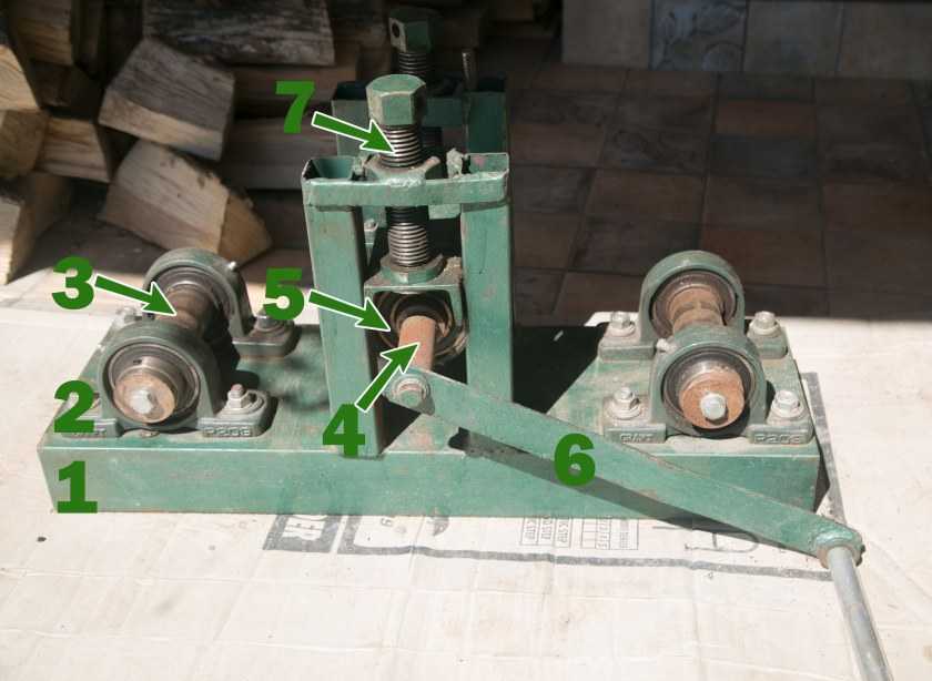 Вертикальные оси и оснастка должны быть расположены в подшипниках качения. В качестве основания можно использовать практически любой верстак или иную надёжную опору. Простейший самодельный трубогиб своими руками можно соорудить и без отдельного гибочного узла.