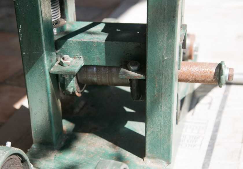 Давление на трубу происходит путём приподнимания части рамы, где смонтирован один из крайних роликов. Процесс сборки похож на предыдущий, но имеет свои нюансы: