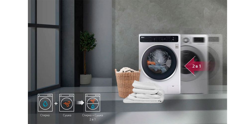 | Стиральные машины с функцией сушки | Экономия семейного бюджета, так как за одну сумму вы фактически получаете 2 прибора. | Если вы максимально загрузили барабан для стирки, перед сушкой часть вещей нужно доставать. Это обусловлено тем, что горячему воздуху надо равномерно обрабатывать одежду. А когда вещи плотно утрамбованы, добиться желаемого эффекта невозможно. Иными словами, вы сушите меньше, чем стираете. |
