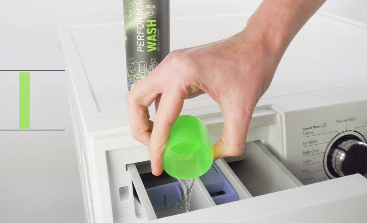 В отсек для порошка добавляют специальные средства для стирки пуховиков в стиральной машине. Если такого средства под рукой нет, можно взять более дешевые жидкости или гели для шерстяных вещей. Они позволять отстирать одежду без разводов.