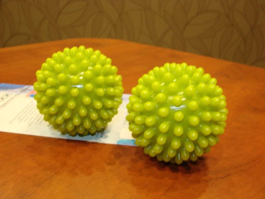 - Если хотите использовать специальные мячик — не покупайте пластиковые, они могут в процессе стирки повредить ткань. Берите те, что помягче.
