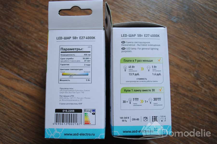 Простой подсчет экономического эффекта дал поразительный результат: лампы не окупали и половины своей стоимости, даже прослужив весь гарантийный срок эксплуатации. После таких расчетов очередную перегоревшую КЛЛ заменила обычная лампа накаливания. Как следствие счет за электричество подрос, и мы предприняли еще одну попытку по замене светильников на энергосберегающие. Как раз наступило время предновогодних скидок, распродаж и прочих акций. Так были приобретены 8 светодиодных ламп ASD.