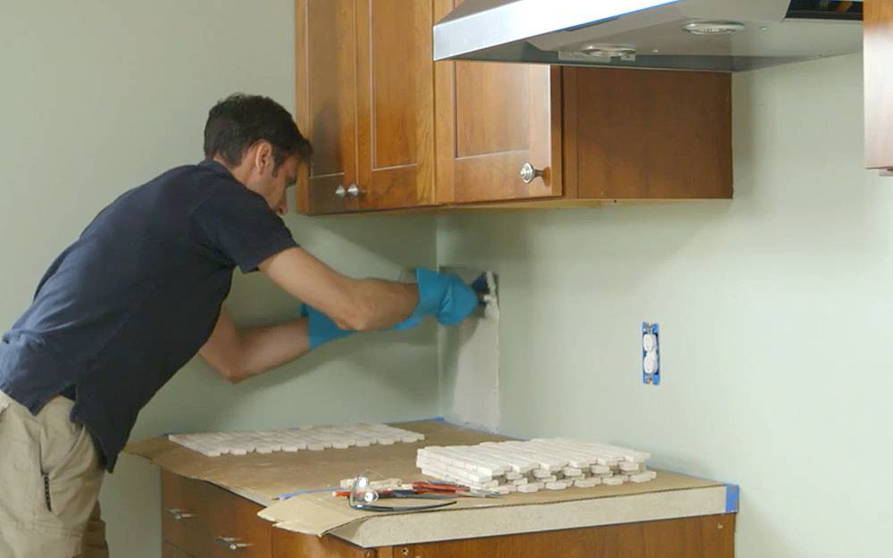 Укладка фартука из плитки на кухне