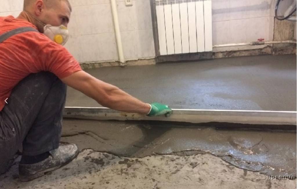 Выравнивание поверхности цементной стяжкой