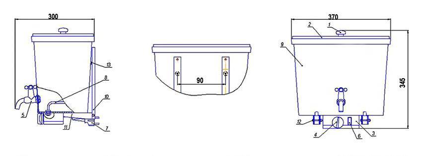 Как умывальник с водонагревателем для дачи, так и умывальник для дачи без подогрева воды изготавливается по одному принципу. Как вы понимаете, разница между ними заключается в наличии или отсутствии нагревательного элемента. Состоит и то и другое изделие из трех частей, об изготовлении которых и придется позаботиться в процессе решения вопроса, как самостоятельно сделать умывальник для дачи?