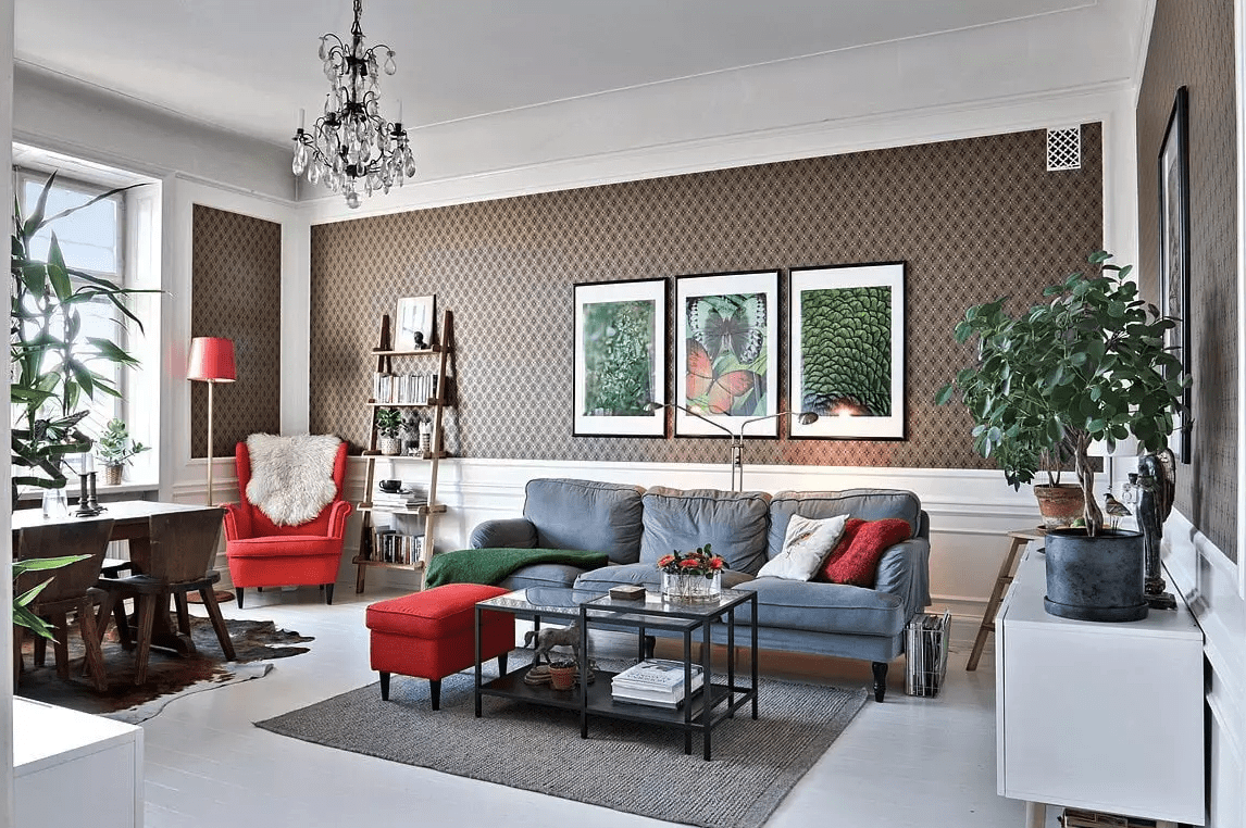 В этом стиле важно не переступить грань между продуманным дизайнерским решением и беспорядком.. Правило трёх основных цветов — это руководство, которое используется для смешивания цветов в гармонической пропорции при декорировании