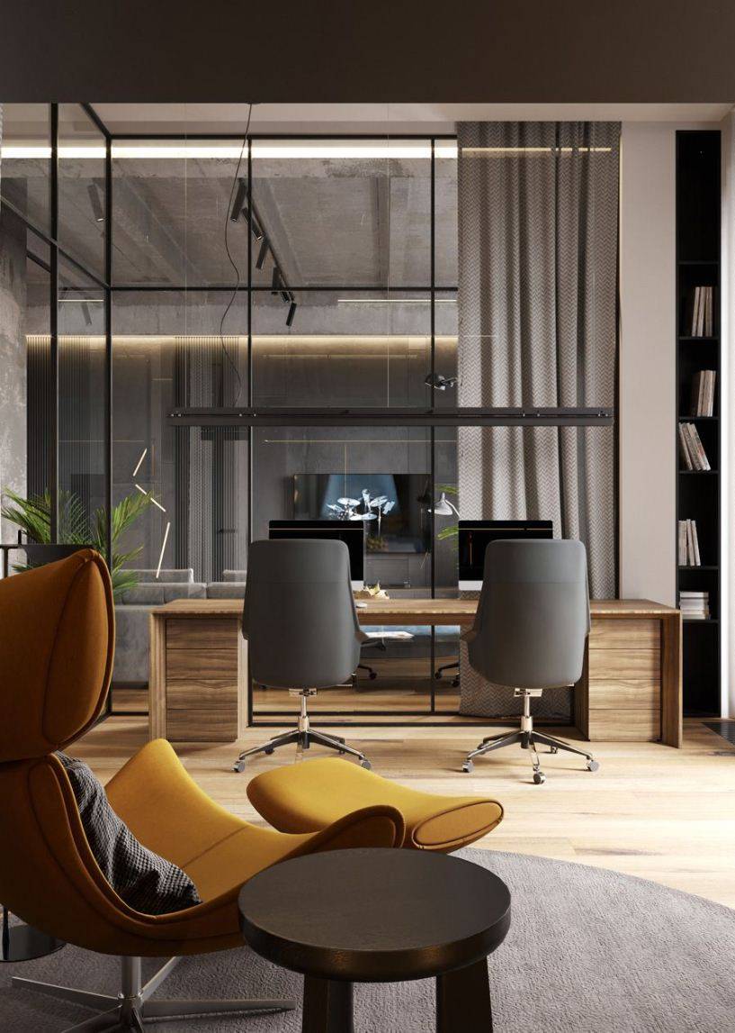 Пожалуй, самый лучший стиль интерьера для деловых мужчин — брутализм. Бетон, минимум декора и функциональность.