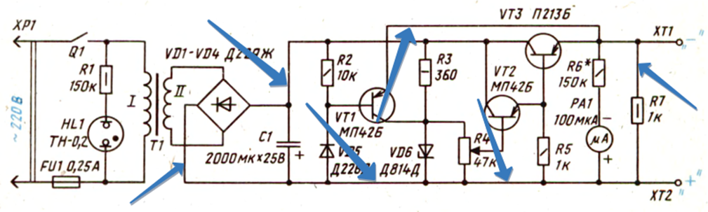 Если пристально вглядеться в схему, то можно заметить пересечение двух проводников