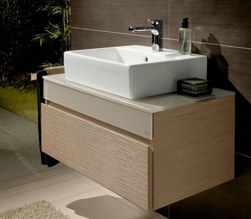 Те же разновидности, которые устанавливаются на столешницы, удобны тем, что не зависят от прочности стены и не потребуют работ с ней (а значит, не придётся портить отделку, если она у вас есть). В отличие от модели на пьедестале, обладающей очень ограниченным пространством для размещения важных мелочей, этот вариант имеет больше места, благодаря свободной поверхности тумбы. На неё можно поставить зубные щётки, пасту, различные кремы и даже найдётся пространство для декоративных элементов.