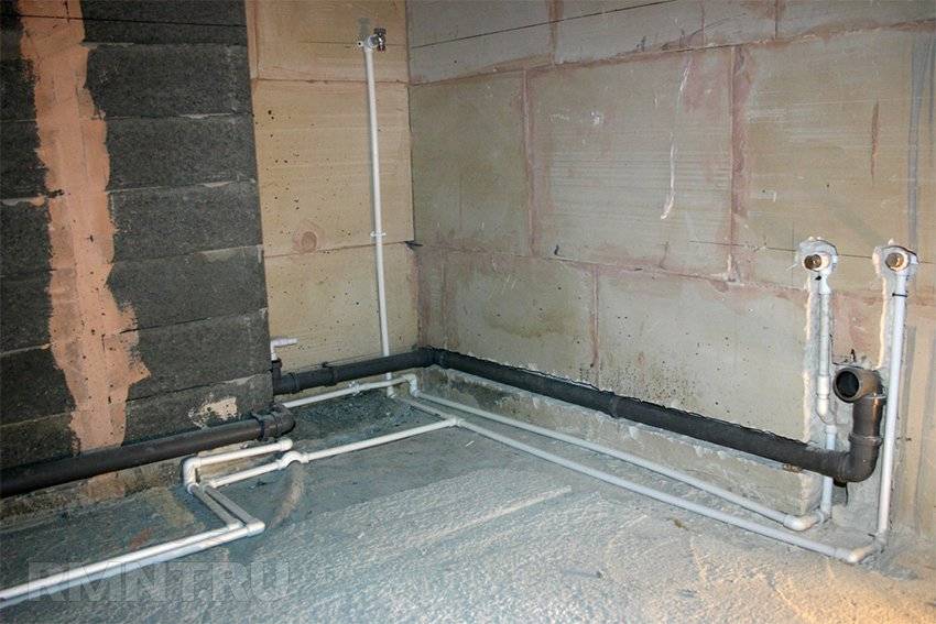 Главное, перед проведением работ, необходимо подвести трубы воды и канализации. Они могут быть разведены наружным или скрытым способом, с подготовленными точками подключения. Для канализации необходимо так же соблюдать уклон трубы, для нормального слива воды.