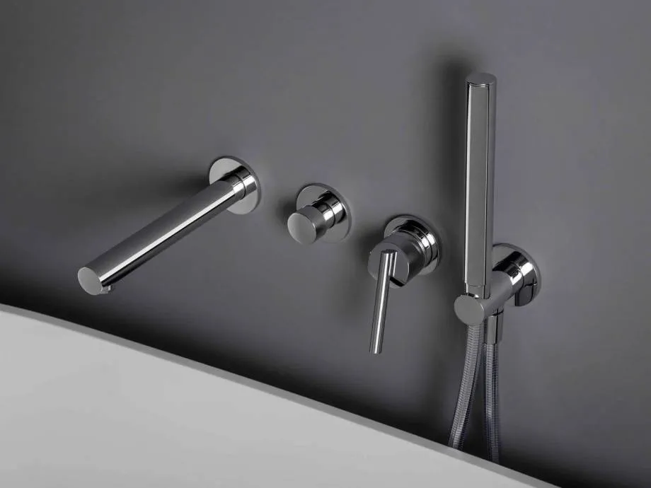 При монтаже на стену один кран может использоваться как для ванны, так и для умывальника (при условии, что они расположены рядом). Обычно на виду не остается никаких неэстетичных шлангов или труб – все скрыто отделкой стен.