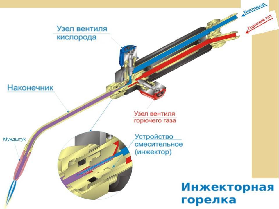 - Прибор с тонким пламенем используется для плавления и сварки швов на изделиях из кварца, фарфора, пластмассы или стекла;