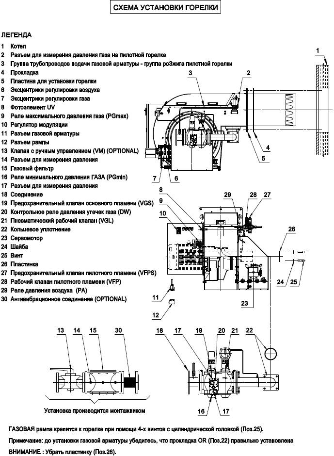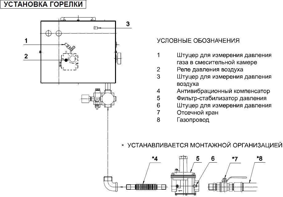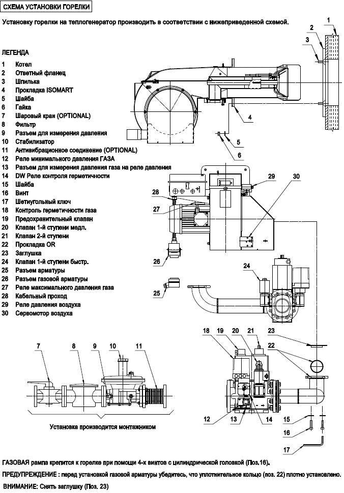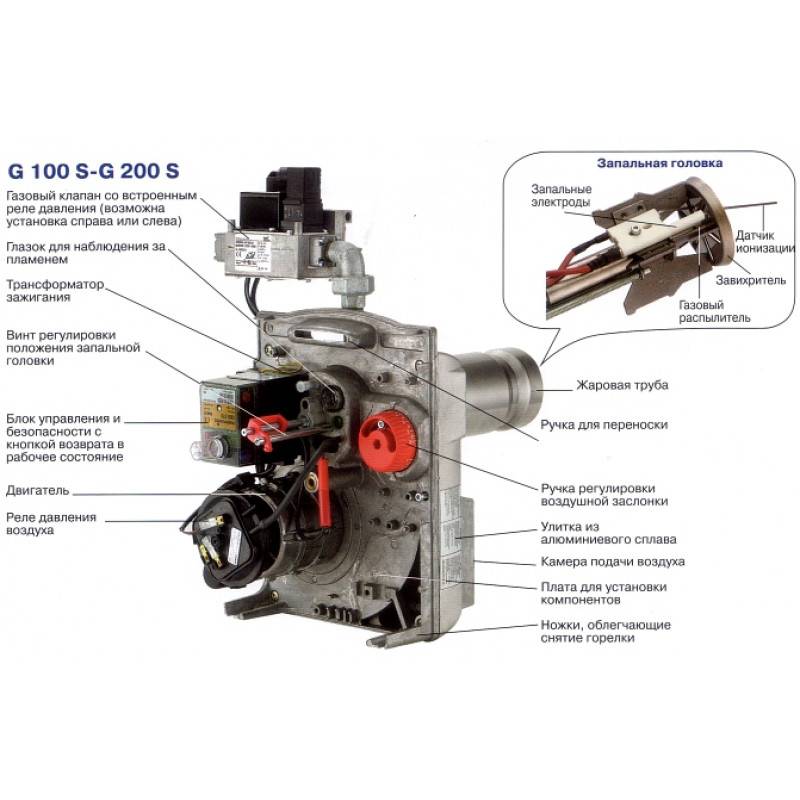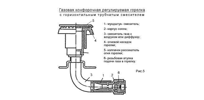 Основные конструкционные элементы газовой горелки рассмотрены на схеме, приведенной ниже.