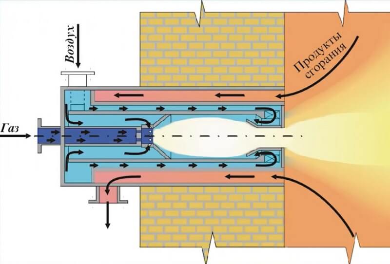 - Диффузно-кинетические. Воздух в камеру сгорания нагнетается частично, остальная часть подводится сразу к пламени.