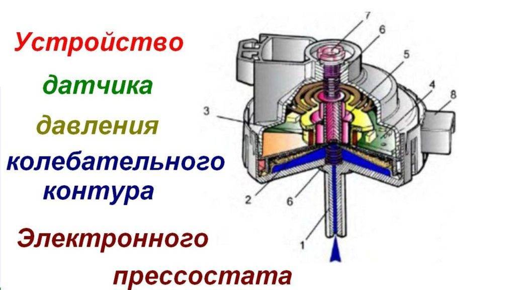 - Прессостат. Этот датчик предназначен для замера уровня воды в ПММ и величины давления в трубках.
