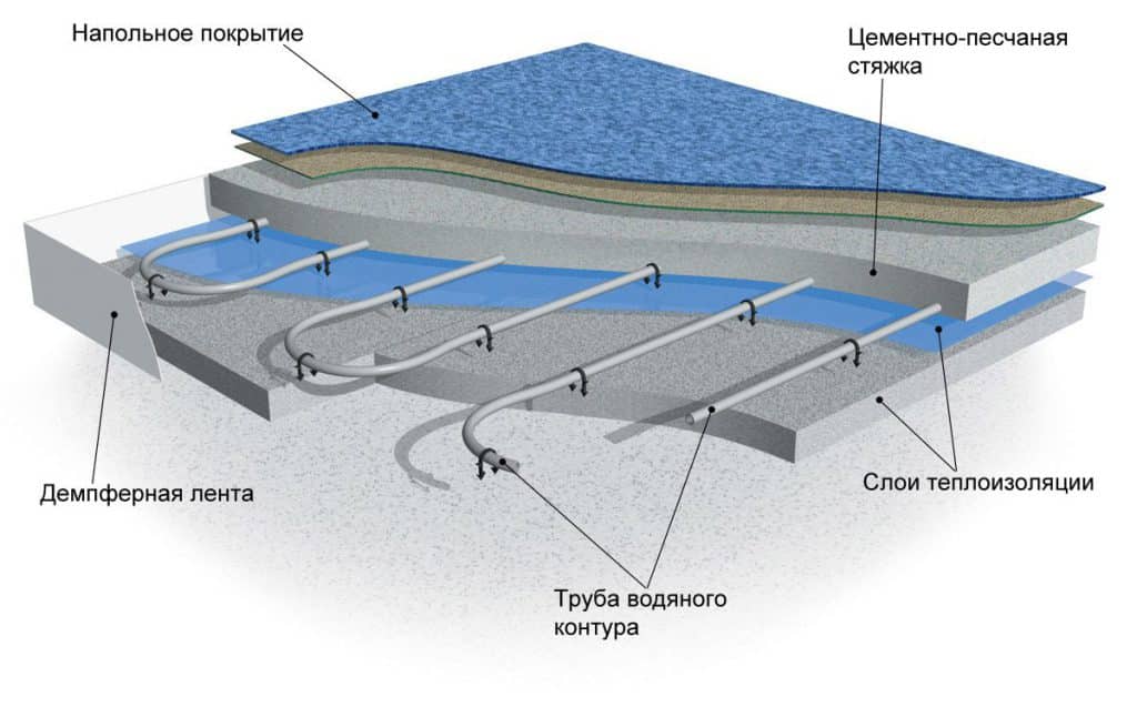 Для водяных полов требуется устройство специальным образом водяного контура.