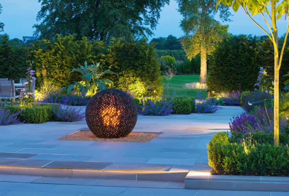 Правильного распределения световых потоков в саду добиваются при помощи многоуровневой системы, состоящей из нескольких групп осветительных приборов. Причем светильники выполняют не только свою непосредственную задачу — подсветку территории, но и декоративную функцию.