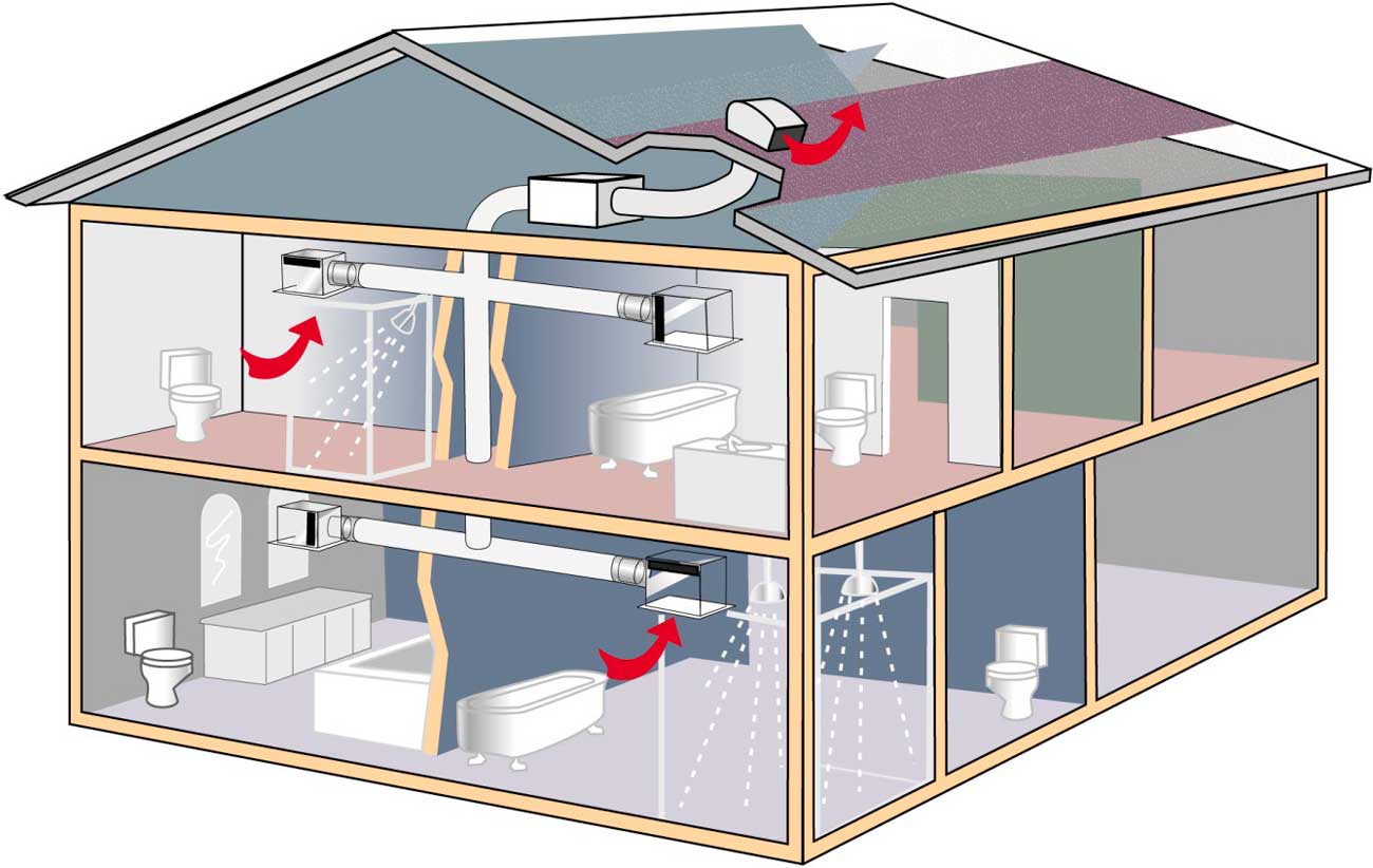 При установке надежной приточно-вытяжной вентиляционной системы необходимо установить два воздуховода. Один из них используется для притока наружного воздуха в ванную комнату, а другой – для удаления загрязненного воздуха из помещения.