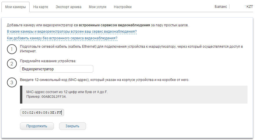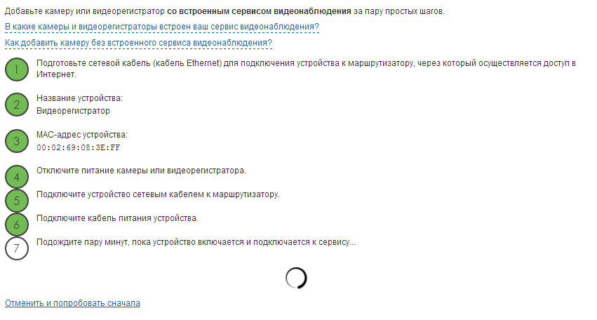 Продолжаем добавление видеорегистратора:
