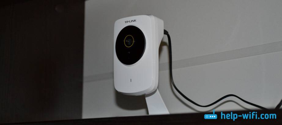 Сама камера к вашему роутеру подключается по Wi-Fi сети. У меня в комплекте с TP-Link NC220 был удлинитель для кабеля питания, и двухсторонний скотч, которым можно закрепить камеру на стену, или потолок.
