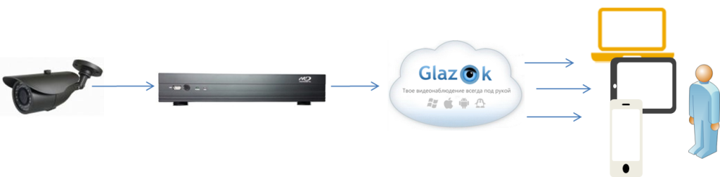 Мы предлагаем вам простой и быстрый способ получить удаленный доступ к камере видеонаблюдения — подключение к облачному сервису Glazok. В этом случае отпадают заботы о статическом IP-адресе, а обращение к аналоговым камерам реализовывается за 5 минут, дополнительно решается задача просмотра видео на мобильных устройствах: смартфонах и планшетах. Так же, можно решить вопрос хранения видеоархивов – просто хранить в облаке. Отправьте нам заявку на подключение и мы свяжемся с Вами.