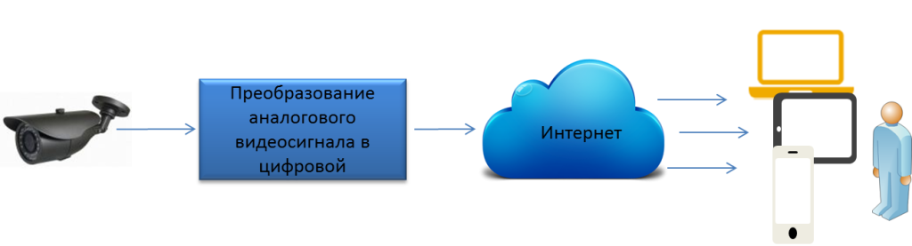 Как известно, аналоговые видеокамеры преобразуют оптическое изображение в аналоговый видеосигнал и передают его по коаксиальному кабелю к серверу видеонаблюдения или видеорегистратору. Одним из способом организации удаленного доступа к аналоговым камерам через интернет является преобразование аналогового видеосигнала в цифровой и последующая его передача через интернет.