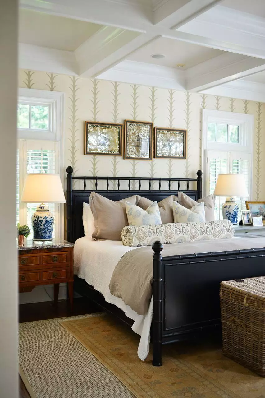 Спальня, оформленная в традиционном стиле, представляет собой настоящий оазис безмятежности, умиротворения и красоты, в котором приятно просыпаться. Как правило, выбирают светлые тона, чарующую и выразительную отделку, насыщенные, многоуровневые сценарии освещения. Особенно приятно в такой обстановке нежиться на очень широкой и мягкой кровати с высоким роскошным изголовьем, большим теплым пледом и кучей подушек. Тонко резные тумбочки и комод или консоль в таком же дизайне добавляют гармонии – так же, как обязательный ковер и шторы теплых оттенков, струящиеся мягкими складками.