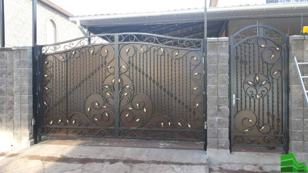 Раздельные ворота и калитка с кованными деталями Источник remontnik.ru