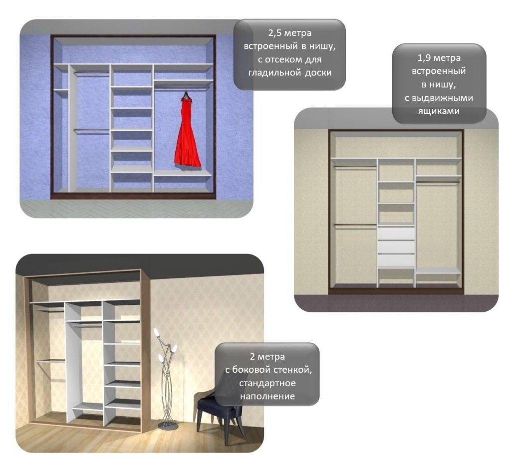 Для разных групп вещей предусматривают определенные элементы с размерами, подходящими для них. Например, если на полке будут хранить постельное белье, целесообразнее сделать ее высоту от 60 см. Если шкаф-купе используется ребенком, габариты все равно предпочтительнее крупные (на будущее).