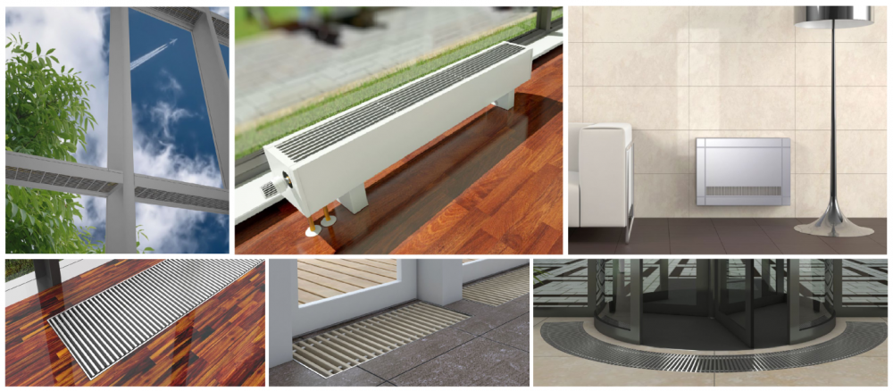 Где применятся внутрипольные водяные конвекторы? Они незаменимы для установки в помещениях с панорамными окнами – в отличие от низких напольных приборов, они не закрывают вид из окон даже частично. Будучи полностью утопленными в полы, конвекторные обогреватели не мешают хождению людей, поэтому они могут быть установлены даже в дверных проемах, создавая преграду для потоков холодного воздуха.